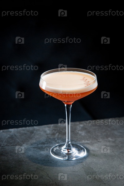 Вид сбоку на тропический коктейль с пеной в бокале для мартини