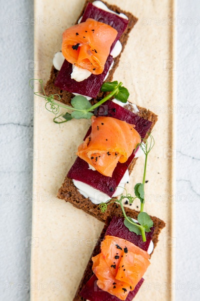 Брускетта с грушей, горгонзолой и черникой, вид сбоку