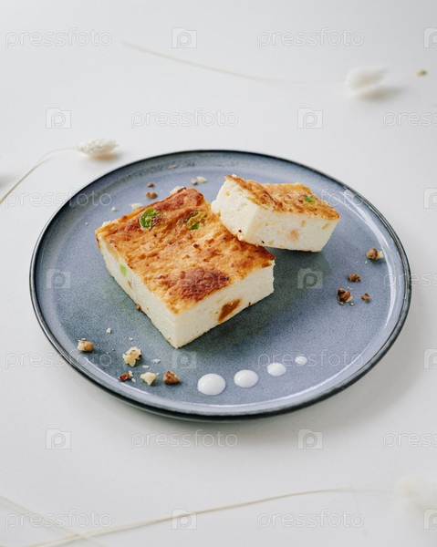 Нежная десертная творожная запеканка на светлом фоне