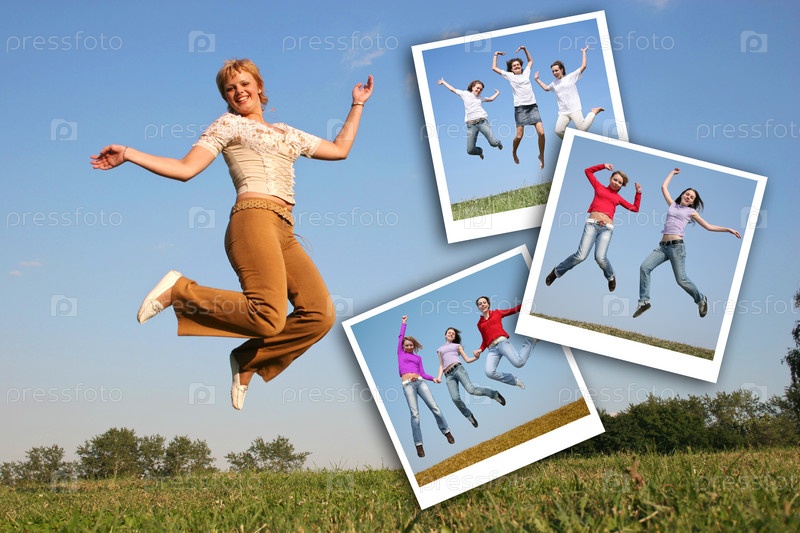 Прыгающие счастливые люди, коллаж