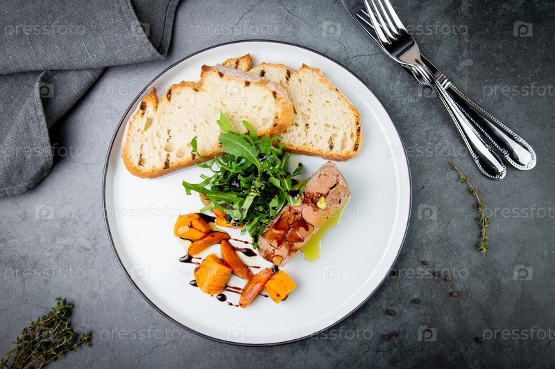 Руккола с хрустящим хлебом и соусом паштет, вид сверху