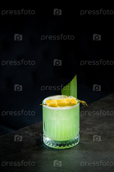 Коктейль из лайма с кусочками ананаса и корицей, вид сбоку