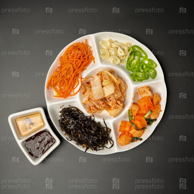 Ингредиенты для бульгоги с салатами, говядиной и салатом, вид сверху