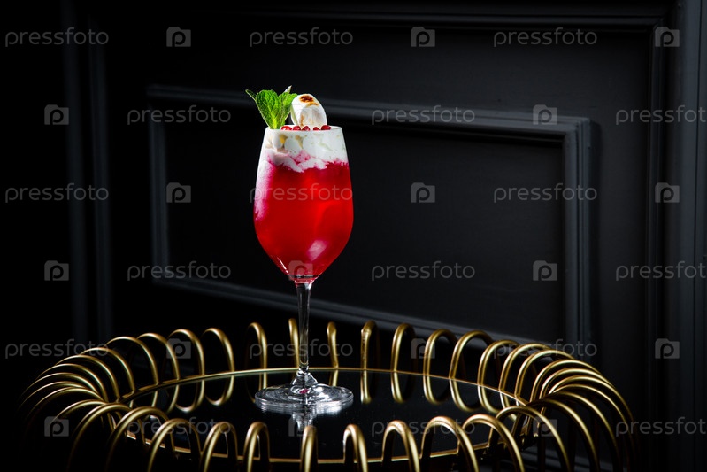 Красный коктейль на темном фоне со взбитыми сливками