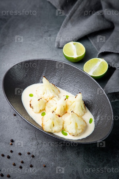 Вареная цветная капуста в грибном соусе и лайме