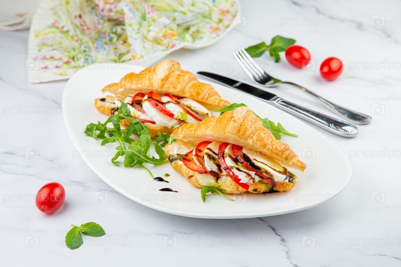 Круассаны с сыром, овощами, помидорами черри и зеленью