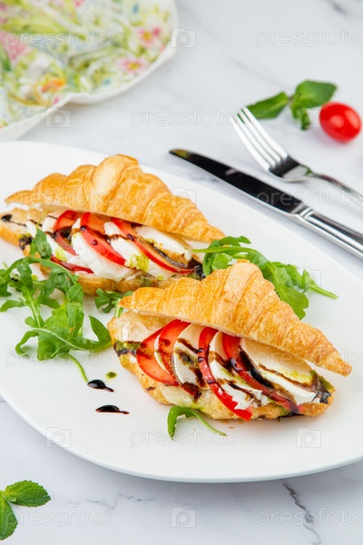 Круассаны с сыром, овощами, помидорами черри и зеленью