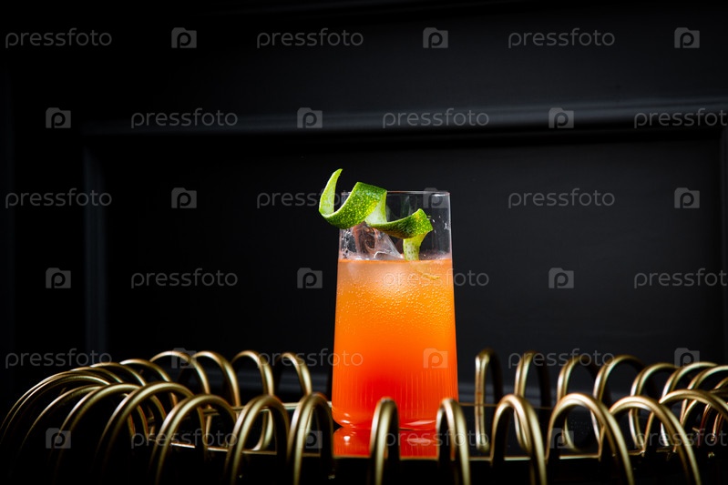 Тропический коктейль с градиентом заката и видом на цитрусовые