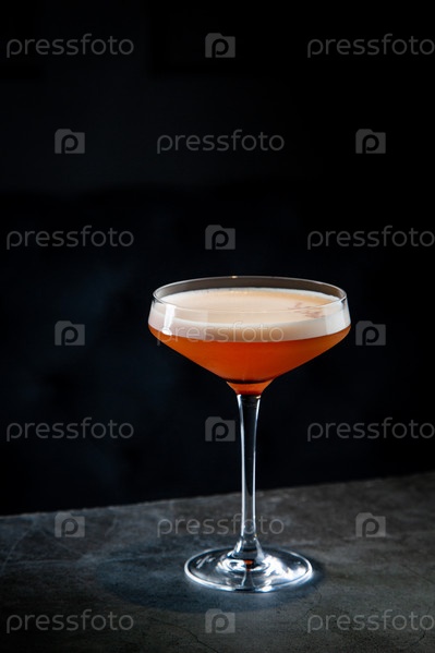 Вид сбоку на тропический коктейль с пеной в бокале для мартини