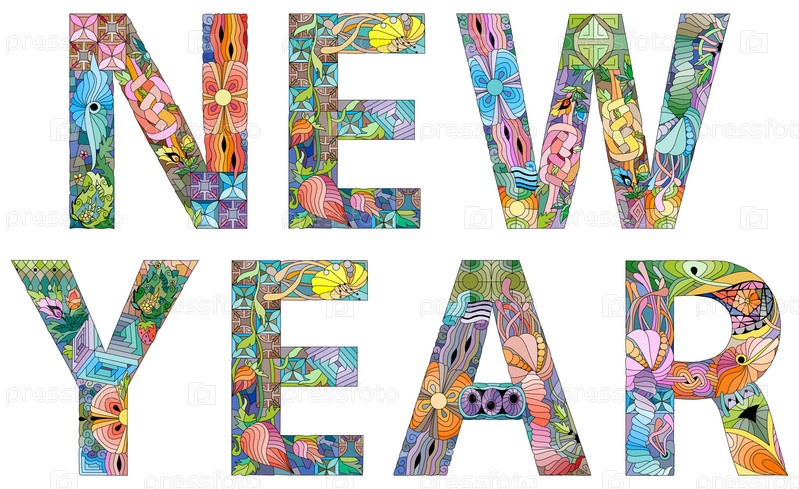 Ручная роспись художественного дизайна. Иллюстрационные слова НОВЫЙ ГОД для дизайна футболок, татуировок и других украшений