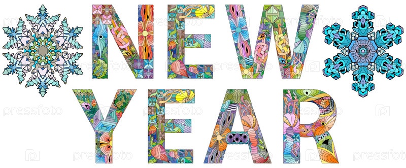 Ручная роспись художественного дизайна. Иллюстрационные слова НОВЫЙ ГОД для дизайна футболок, татуировок и других украшений