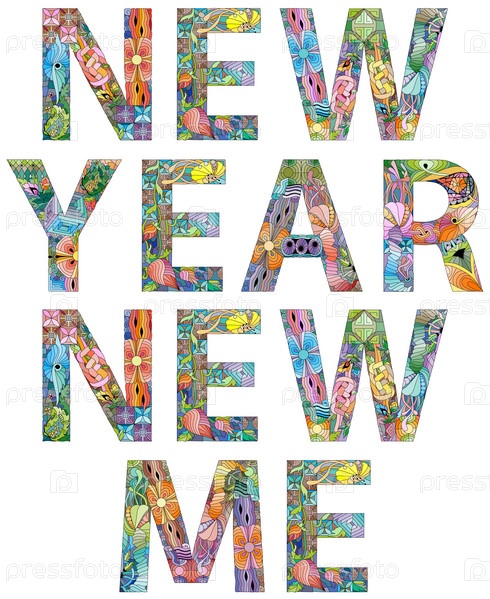 Ручная роспись художественного дизайна. Иллюстрационные слова НОВЫЙ ГОД НОВЫЙ Я для дизайна футболок, татуировок и других украшений