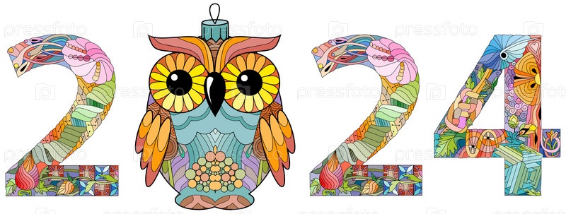 Дизайн номера 2024 года с рождественским шаром. Симпатичная векторная иллюстрация для украшения