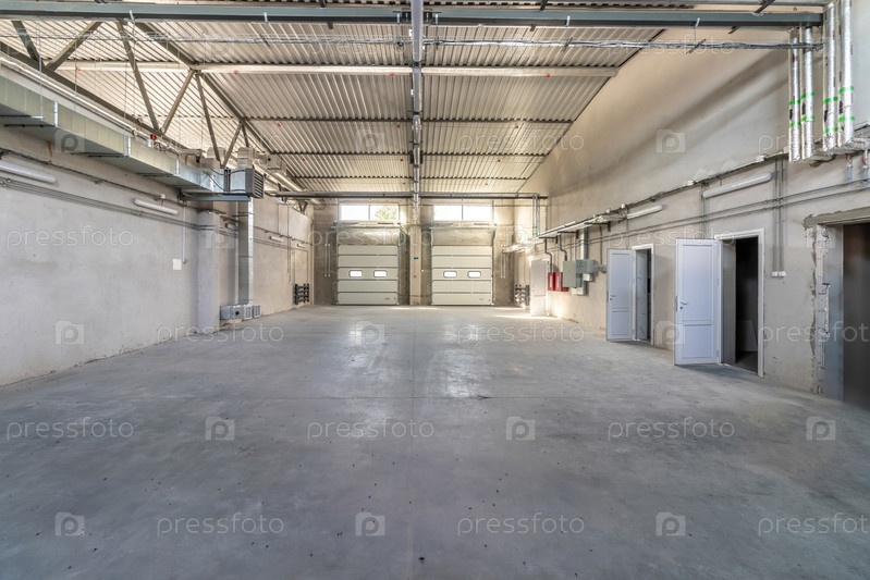 Промышленное здание или современный завод для производственного предприятия или большого склада, чистое состояние полированного бетонного пола и место для демонстрации промышленной продукции или отраслевого фона