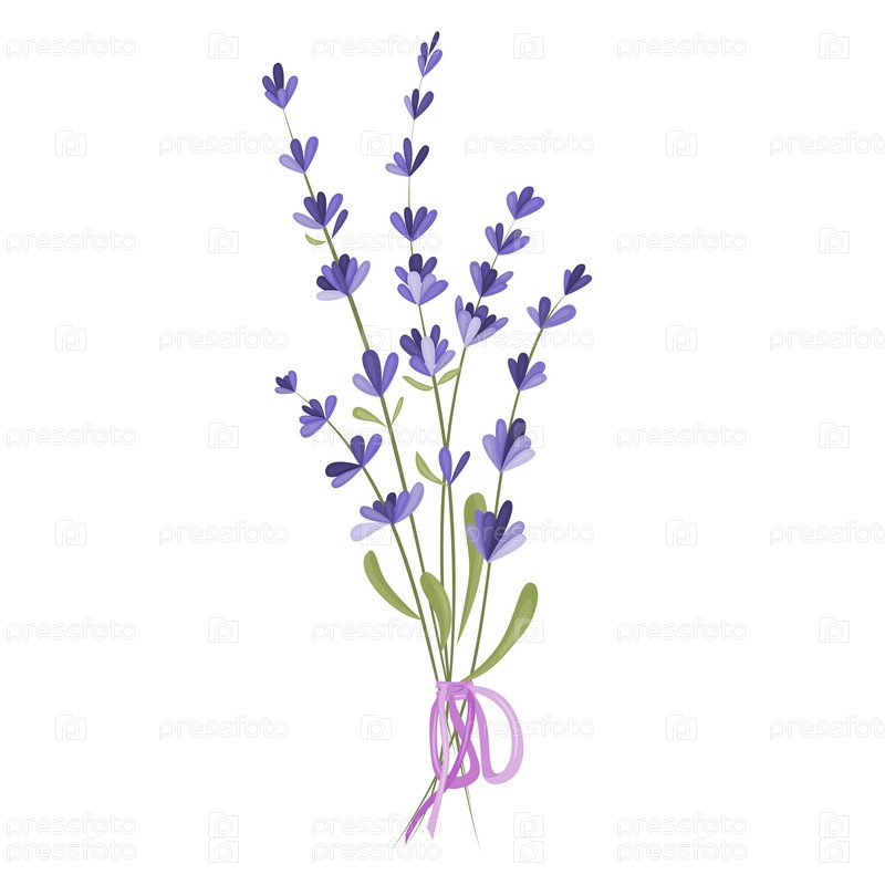 Букетик лаванды, изолированный на белом фоне. Иллюстрация лаванды для дизайна упаковки, логотипа, косметической продукции. Вектор