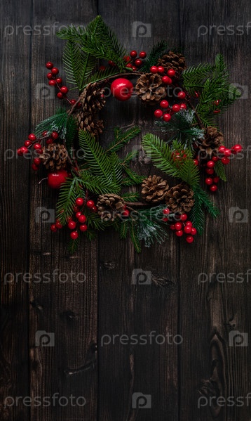 Рождественский венок висит на деревянной стене