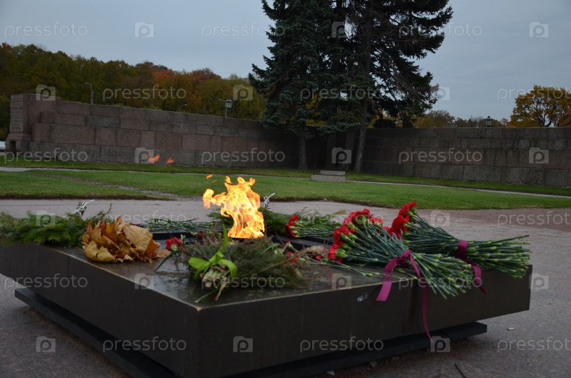 Вечный огонь на Марсовом поле в Санкт-Петербурге в центре памятника «Борцам революции». Первый вечный огонь в СССР зажженный 6 ноября 1957
