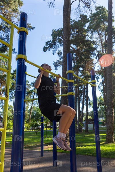 Портрет красивой спортивной девушки-подростка, тренирующейся на открытом воздухе в спортзале на открытом воздухе в летний солнечный день