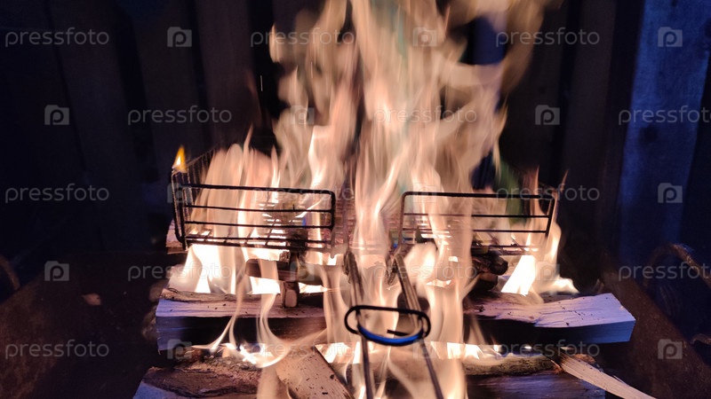Яркое пламя горящего костра