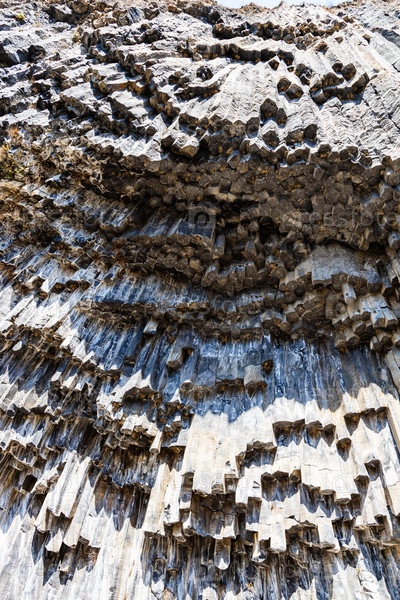 Вид снизу на базальтовые колонны в ущелье Гарни