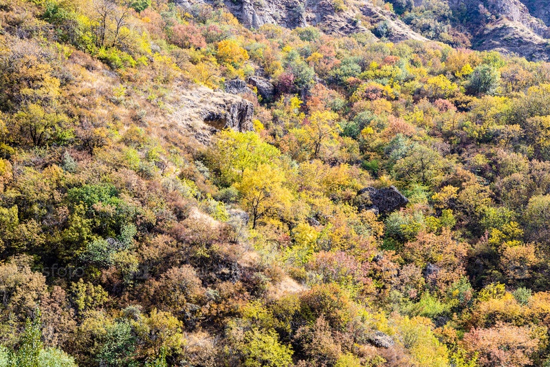 Заросшие красочные склоны ущелья осенью