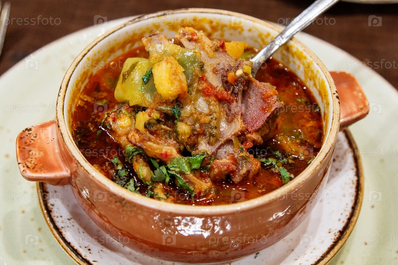 Поедание традиционного супа Чанах в керамическом горшке