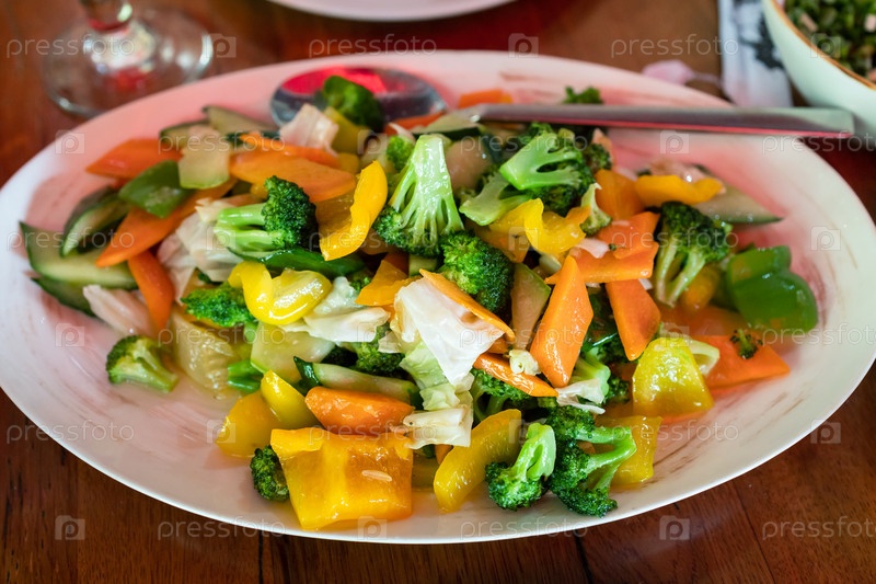 Слегка обжаренные свежие овощи с брокколи