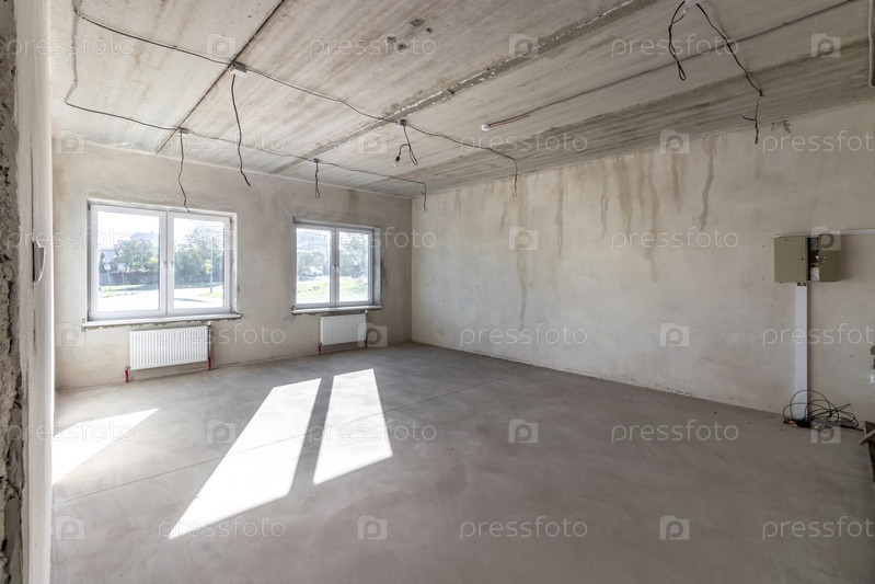 Пустое бетонное коммерческое помещение без отделки перегородками