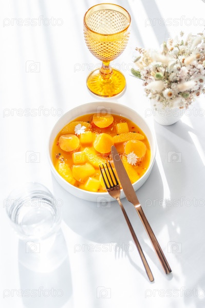 Севиче из лосося в желе с соусом из апельсина и манго-маракуйи