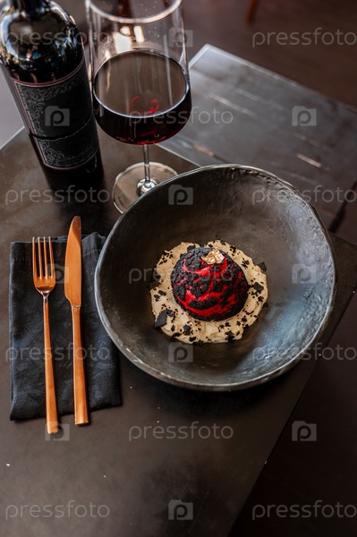Булочка Шу Шу с говядиной, сливочным сыром, пармезаном эспума и чипсами Бородино