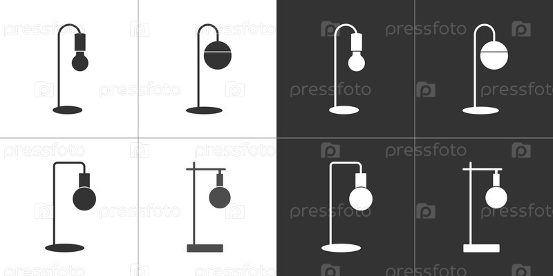 Настольные лампы. Черные и белые плоские иконки