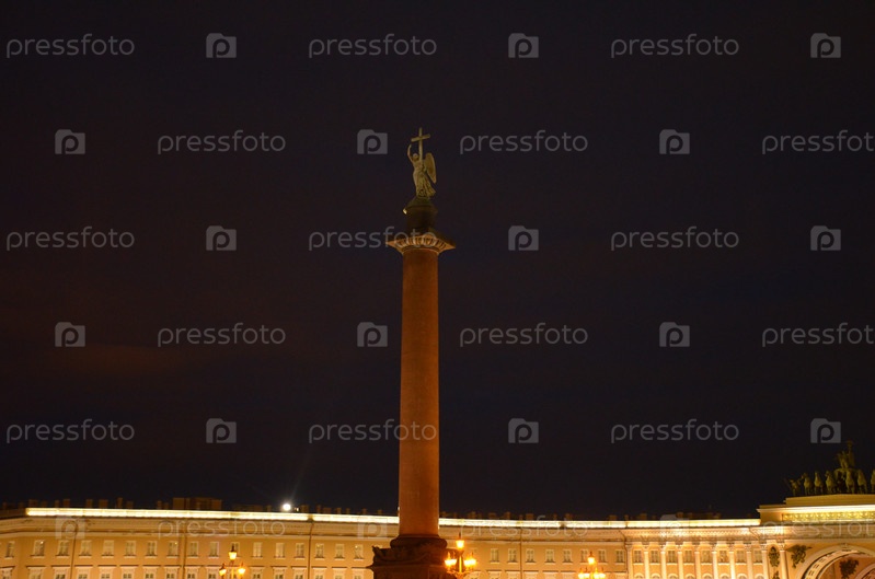 Ночной вид на Дворцовую площадь в Санкт-Петербурге: Здание Главного штаба, Александровская колонна (Александрийский столп)