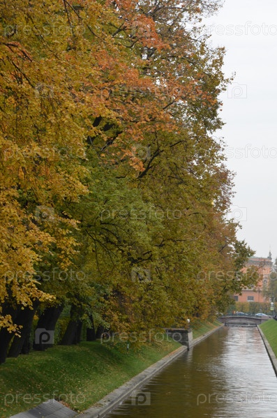 Лебяжья канавка у Летнего сада в Санкт-Петербурге, осенний городской пейзаж