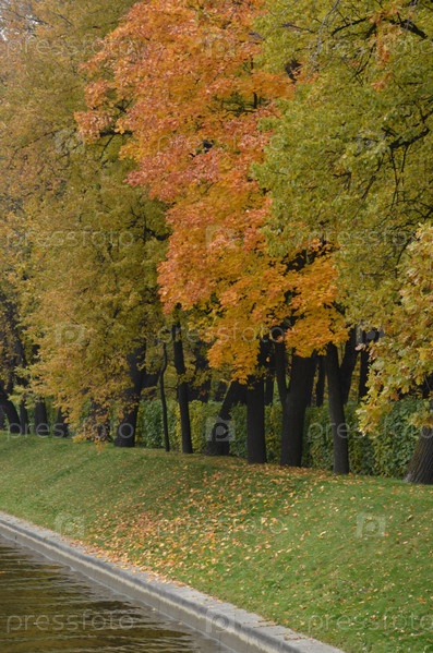 Лебяжья канавка у Летнего сада в Санкт-Петербурге, осенний городской пейзаж