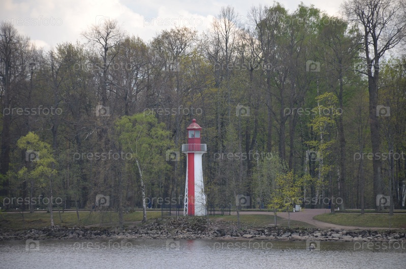 Южный маяк в Нижнем парке Петергофа в Санкт-Петербурге весной