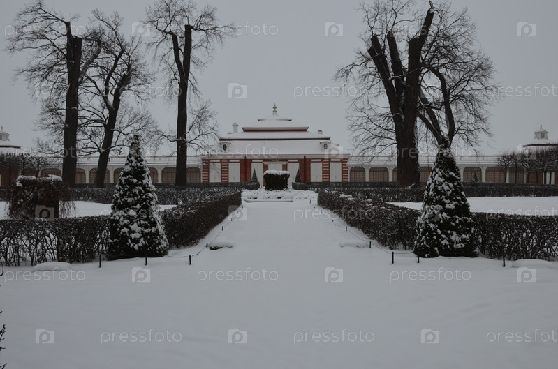 Дворец Монплезир в Нижнем парке Петергофа в Санкт-Петербурге зимой