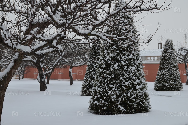 Марлинский вал в Нижнем парке Петергофа в Санкт-Петербурге зимой