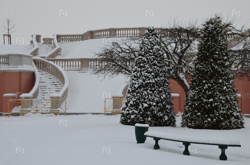 Лестница на Марлинский вал в Нижнем парке Петергофа в Санкт-Петербурге зимой