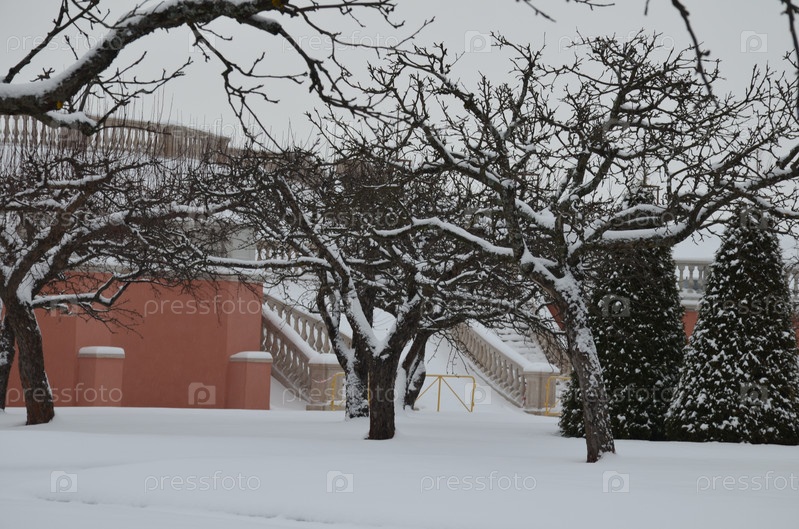 Лестница на Марлинский вал в Нижнем парке Петергофа в Санкт-Петербурге зимой