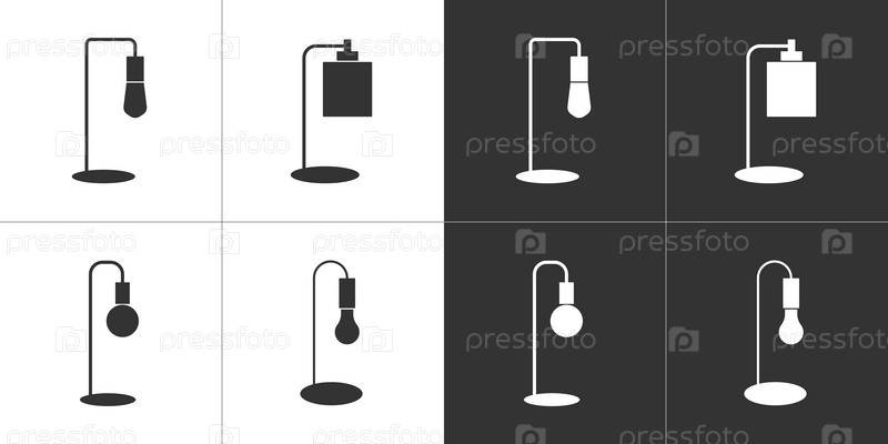 Набор иконок настольных ламп на белом и черном фоне