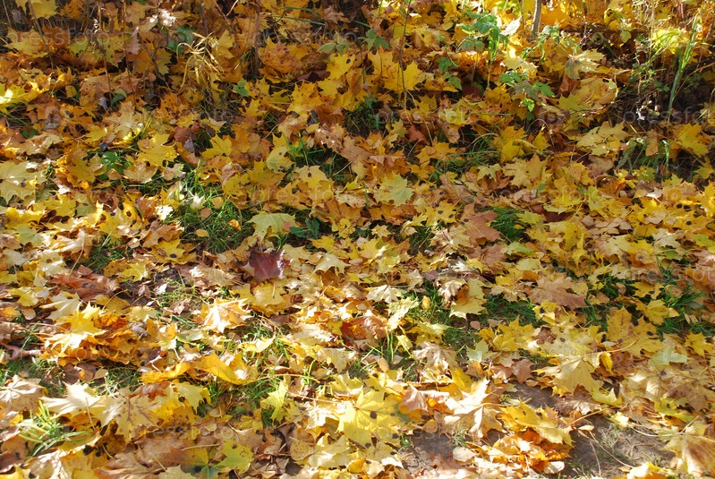 Желтые листья на зеленой траве