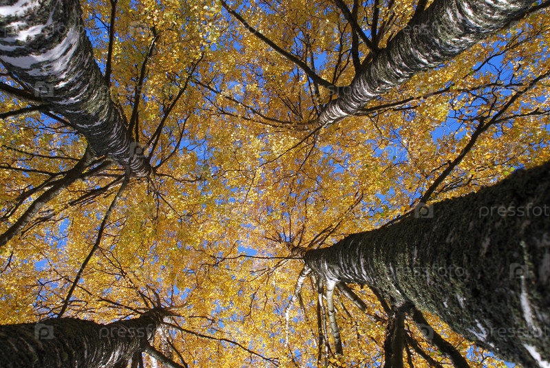 Высокие березы с желтой листвой