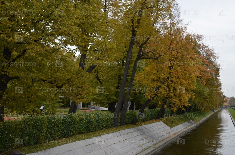 Лебяжья канавка у Летнего сада в Санкт-Петербурге, осенний городской пейзаж