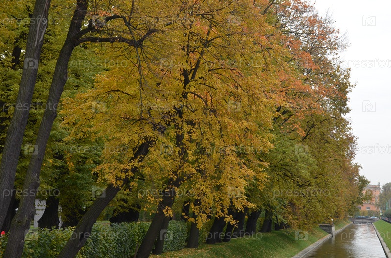 Лебяжья канавка у Летнего сада в Санкт-Петербурге, осенний городской пейзаж