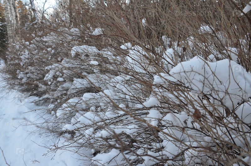 Кусты занесенные снегом в зимнем парке