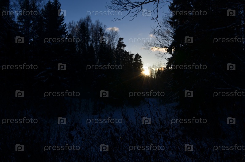 Рассвет в зимнем лесу
