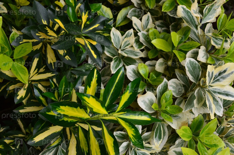 Фон из зеленых листьев бересклета разных тонов