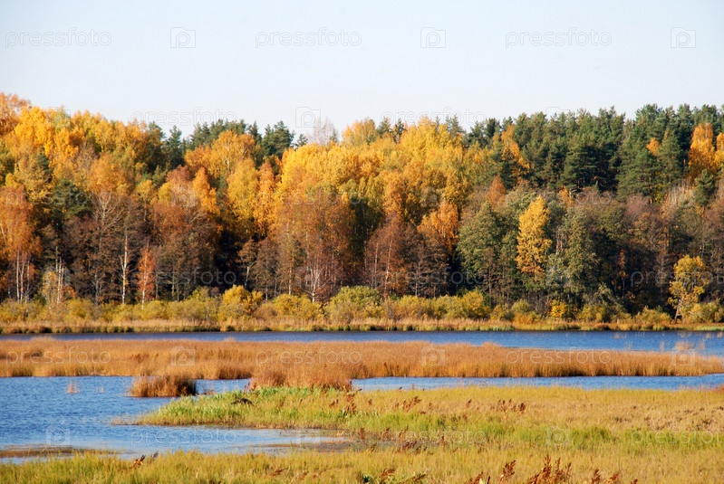 Осенние деревья на берегу чистого озера