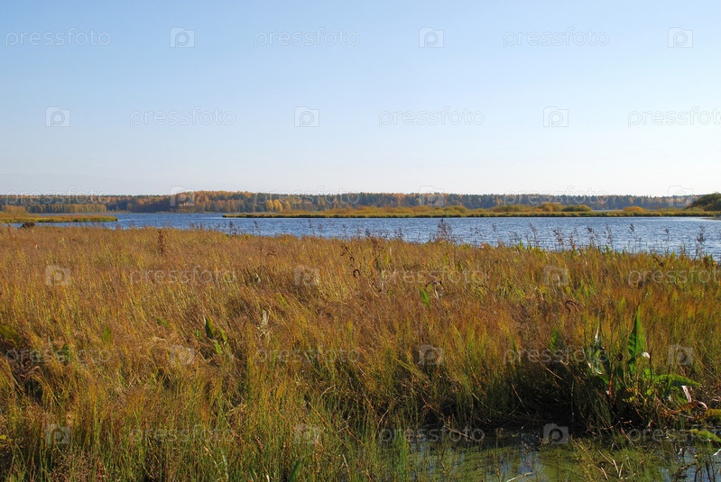 Осенние деревья на берегу чистого озера
