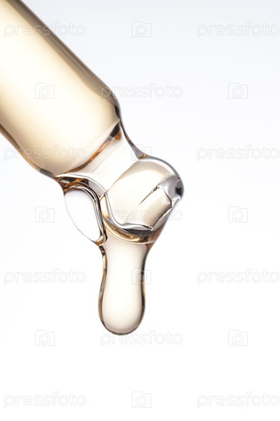 Из пипетки падает капля косметического масла. Макроснимок жидкости для ухода за кожей